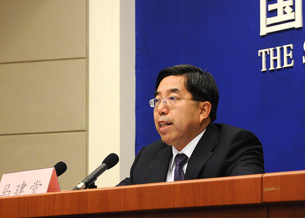 國家統計局局長馬建堂在新聞發布會現場回答記者提問。(新華網 翟子赫 攝)