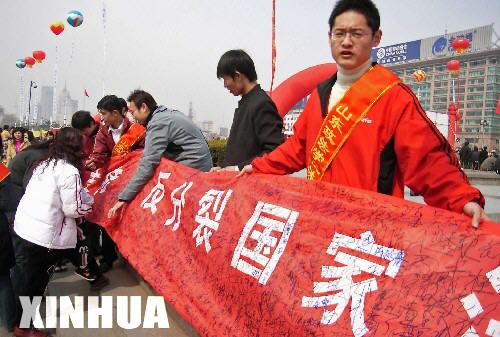 山東政法學院的大學生在校園簽名擁護《反分裂國家法》