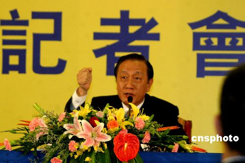 圖:臺灣新黨主席郁慕明在北京舉行記者會