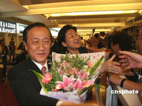 中國臺灣網消息 新黨主席郁慕明結束在大陸八天的“民族之旅”,七月十三日晚間十點左右抵達臺北,在機場受到支持群眾的歡迎。(來源:中新網;作者:路梅)