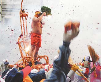扮演寒單爺者,下轎后都皮開肉綻,或渾身瘀青紅腫。一名從西部前往觀看的溫姓游客說,看炮炸寒單爺,比看鹽水蜂炮還刺激。但寒單爺的皮開肉綻,讓人不忍。 |